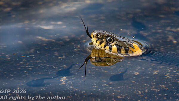 Koivisto, Kari, Finland, Grass snake and tadpoles -